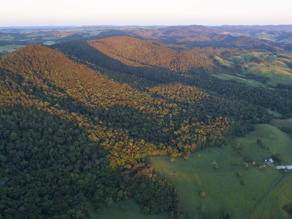 Misty Mountain supports two rainforest regional ecosystems: endangered notophyll vine forest on rich basalt soils, and complex vine forest on granites and rhyolites at higher elevations. The basalt-based forest had previously been cleared, but much has since regenerated into 30–40-year-old rainforest. Under Queensland law, such regrowth could have been cleared again without a permit—threatening decades of natural recovery and the viability of the corridor. Our 2017 purchase of the reserve removed that risk.