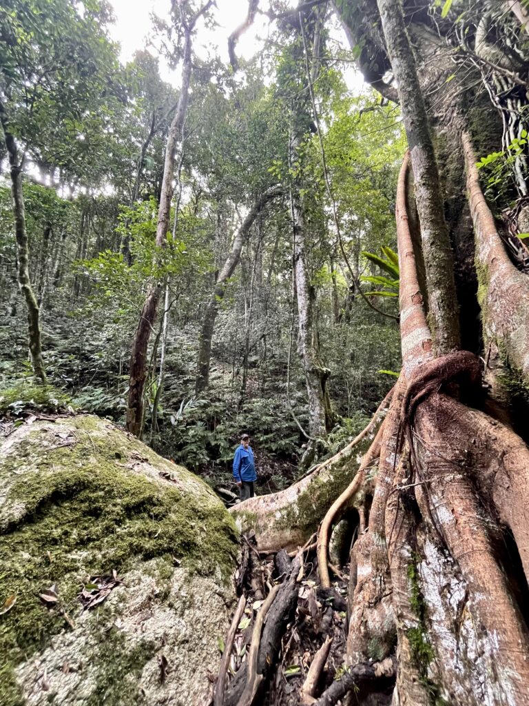 The eastern edge of Mt Gibson is marked by remote, cloud-shrouded granite peaks and plateaus—rarely explored and never logged due to their inaccessibility. These highlands protect unique rainforest pockets, including the Lost World, a rainforest-topped plateau, and Mt Amy, known for its tall palm forests and diverse wet forest types amidst an otherwise dry savanna landscape.